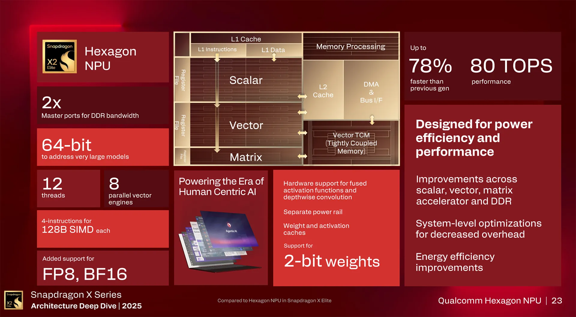 The NPU in the Snapdragon X2 Elite is rated at up 80 TOPS, making it the fastest NPU we’ve ever seen in a consumer device.