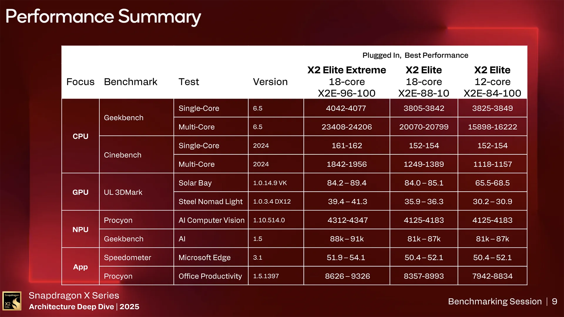 On the power and performance side, Qualcomm provided insight into the full performance range of the Snapdragon X2 Elite series of processors.